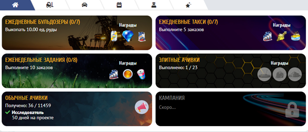 В разделе «миссии» Вас ждут простые задания, за выполнение которых можно получить полезные награды в виде усилителей и валюты. Имея Premium статус, вы получите в награду еще больше!