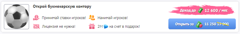 Букмекерские конторы — это виртуальный бизнес в Taxi-Money, который позволяет любому игроку хорошо заработать в игре и владельцу – в первую очередь!