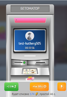 Увеличивайте размер выигрыша (зеленая кнопка слева) или сокращайте время ставки (жёлтая кнопка справа) в интерфейсе бетоматора для работников БК.