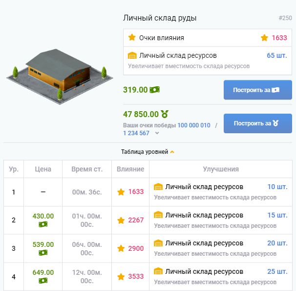 Вместимость личного склада руды ограничена. Возможны ситуации, когда Ваш личный склад будет полностью загружен добытой рудой. В таком случае новая руда, которую будут добывать Ваши бульдозеры, не сможет быть отгружена на склад — она пропадёт.