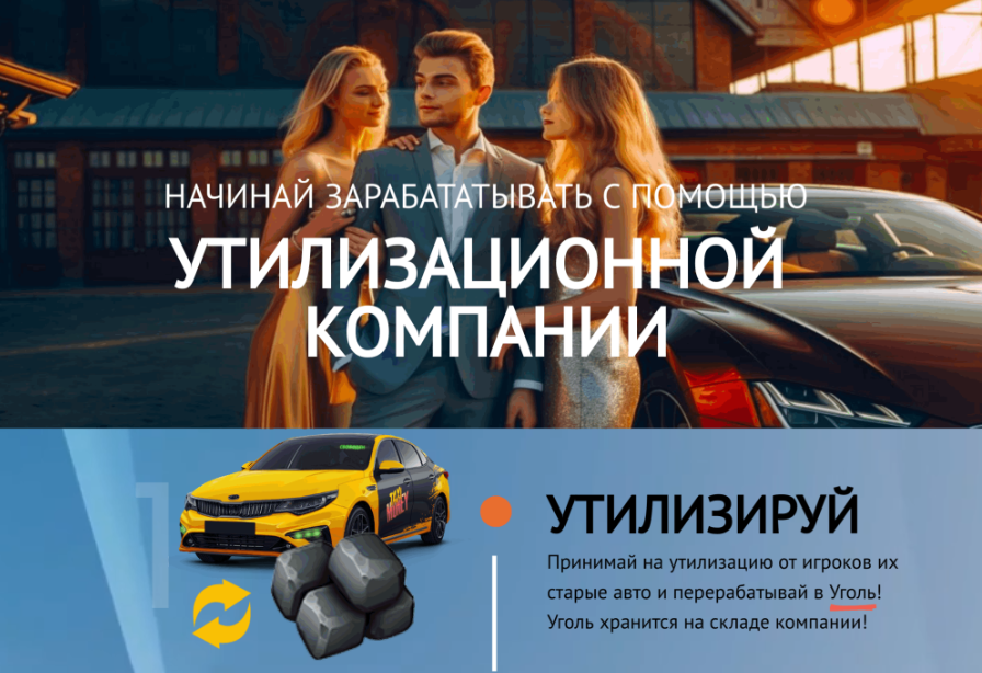Откройте утилизационную компанию. Выкупайте у других игроков машины и бульдозеры, которым требуется ТО. И перерабатывайте их в уголь.