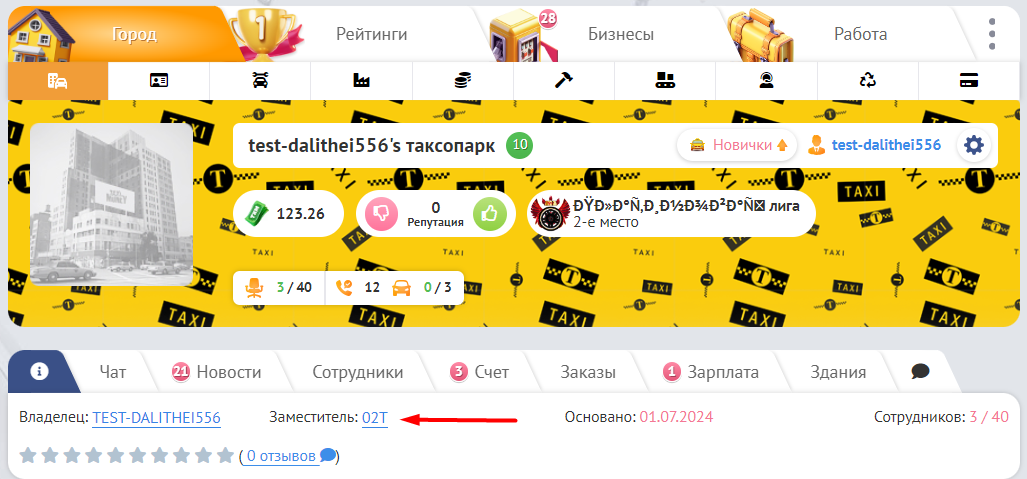 Назначить на должность и снять с должности заместителя может только владелец компании. Заместитель назначается из числа сотрудников компании. Заместитель не может выводить средства со счетов компании. Заместитель не может расходовать собственные средства на строительство “Построек для бизнеса”. Назначать заместителя можно только владельцам, у которых есть Premium аккаунт.