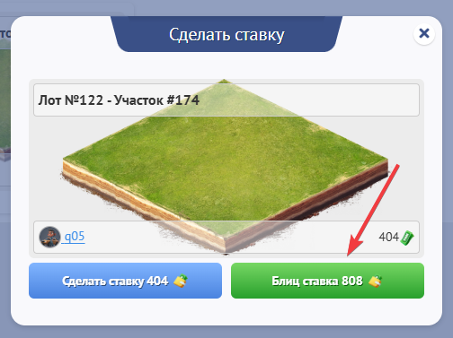 Блиц ставка - это сумма х2 от текущей ставки, нажимая на нее лот мгновенно выкупается