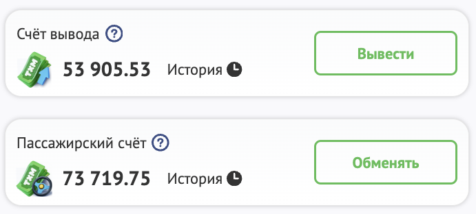 Вы можете вывести всю сумму , которая есть на балансе "Вывод", если у вас есть данная сумма на "Пассажирском счете".