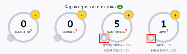 В любой момент, если Вы уже прокачали какую-либо характеристику, можно сбросить очки и перераспределить их иначе. Для этого нажмите кнопку «-» и очки перейдут в состояние «нераспределенные».