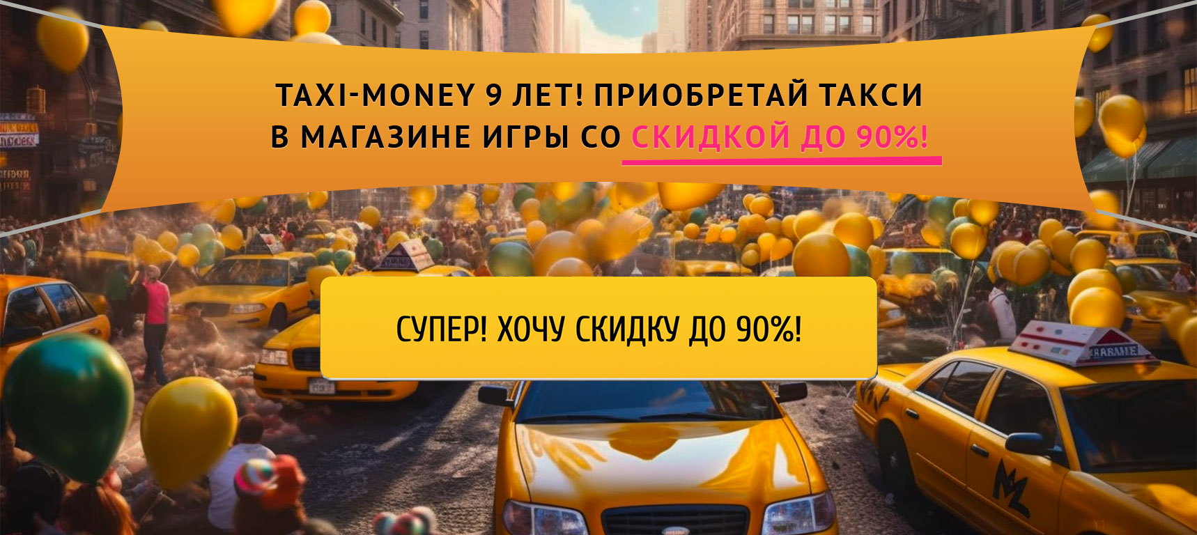 Ещё раз поздравляем тебя с Днём рождения Taxi-Money! Воспользуйся возможностью получить все подарки, которые мы приготовили для тебя в игре, и приумножай свои вложения в игру с прибылью до +400%!